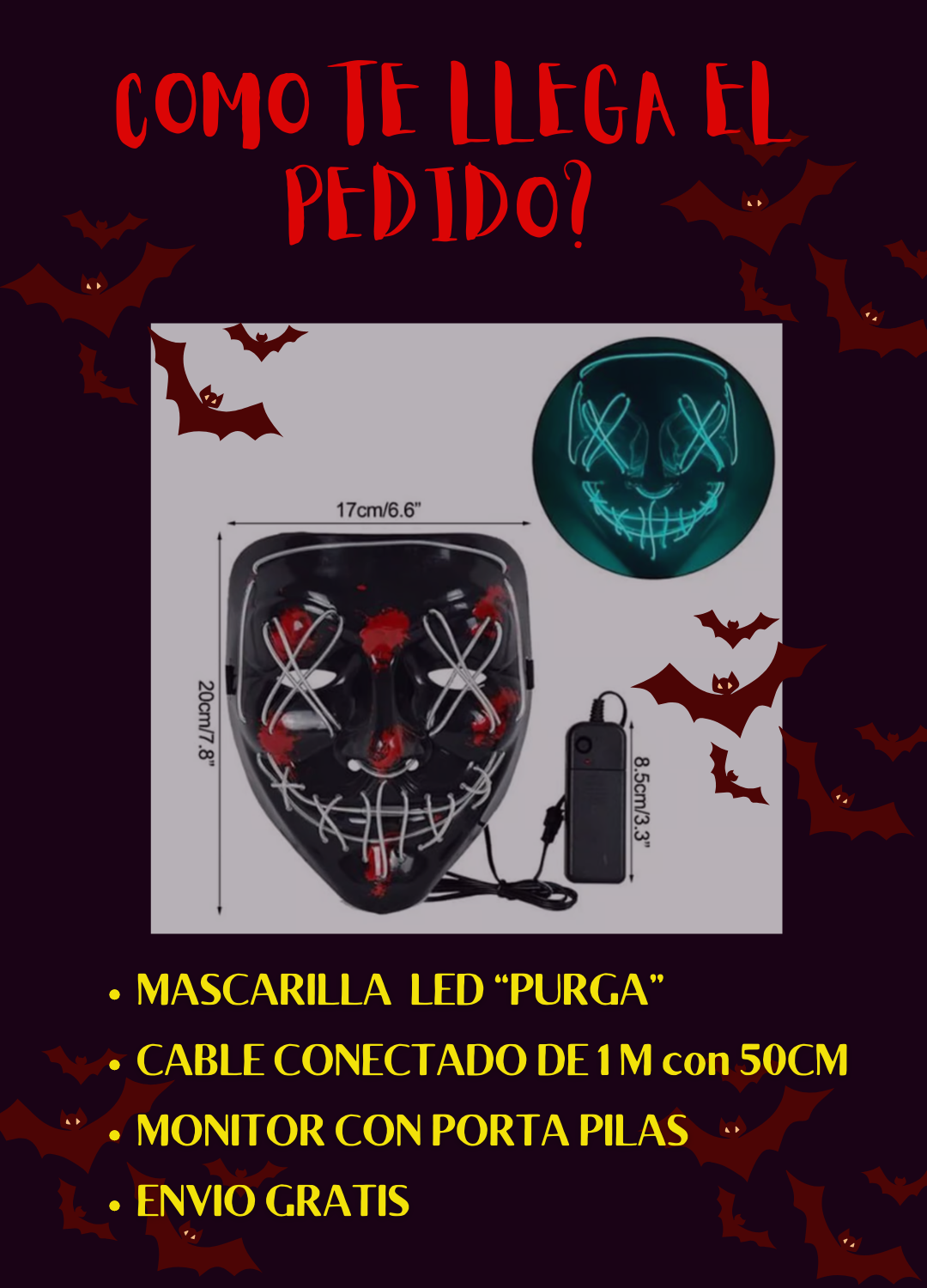 Olvídate de las máscaras simples y da un paso adelante con nuestra Máscara LED La Purga. Con brillo ajustable y diseño auténtico, esta máscara es fácil de usar y garantiza que tendrás el mejor look por horas. Ya sea para fiestas de disfraces, festivales o cualquier evento nocturno, ¡serás el protagonista!
