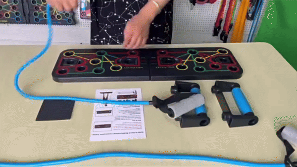 La Tabla de Flexiones con Bandas Elásticas te permite trabajar diferentes grupos musculares de manera eficiente. Su diseño codificado por colores guía eficazmente cada movimiento, maximizando tus resultados. Además, es ligera y portátil, perfecta para usar en cualquier espacio. Con este sistema, no solo potencian tus pectorales, también fortalecen el core, brazos y piernas, mejorando tu condición física en general.